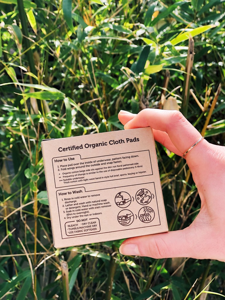 My final consideration, and ultimately my product of choice, was reusable, material pads. I had decided after looking into the above two options that I wanted to get something that was similar to a pad, without the priciness of period underwear, and that required some, but low, maintenance. Which is why I chose to invest in material pads from HannahPad. I had come across the brand before during my initial research into eco-conscious period products, and when I visited my local sustainable-store, EcoLateral, I decided that they would be my sanitary product of choice. Not only are they an Australia/New Zealand based brand, the material used is both toxic-free and 100% organic cotton. The use of such high quality cotton also means that the pad has superior absorption capacity, as well as being a breathable material and longer lasting, with a lifespan of 2-3 years, and a biodegrade time of 12 months, unlike many plastics which can take anywhere up to a couple of decades to hundreds of years to break down. It was these things and more that made me choose this particular brand and product. The two pack of extra grip, size small, material pads cost me $33.90, which was well within what I could afford. And with that, I had purchased my very first sustainable period product.